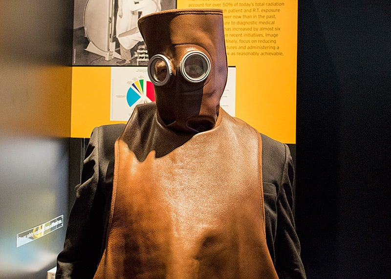 • Dressing up in replicas of vintage radiation protection apparel, including lead-lined leather aprons and “bucket” head gear.